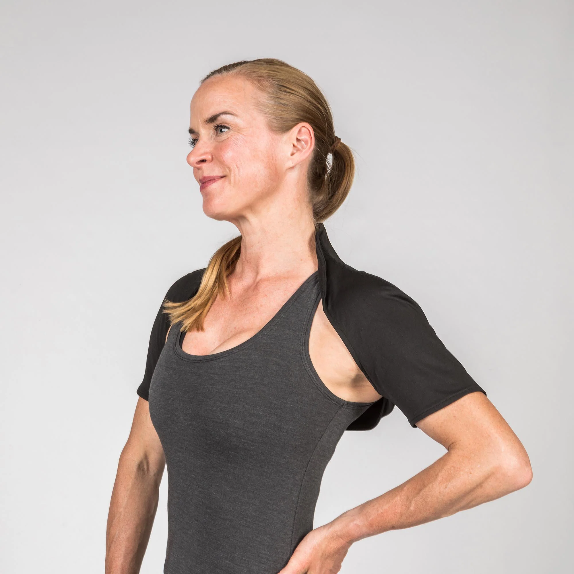 The Bolero combines sleek design with the power of Welltex® and Iontex® to support circulation and ease tension in the neck and shoulders. Made from lightweight, breathable fabric, it’s slim enough to wear discreetly under clothing and stylish enough to wear alone. Elastic seams ensure a soft, non-restrictive fit for all-day comfort—whether you're working at your desk or unwinding at home. A built-in hanger loop adds a smart finishing touch. Feel the comfort. Embrace the wellness.